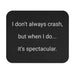 A slim, black rectangular mouse pad that speaks with dry wit. The matte surface is smooth for effortless cursor control, while the dense foam and rubber backing hold it steady through frantic clicks and late-night work sprints. White, minimalist text reads: “I don’t always crash, but when I do... it’s spectacular.” It’s the kind of small desk detail that makes your workspace feel less formal and more like you — a little sardonic, fully functional, and quietly entertaining during long coding sessions or marathon gaming nights. Easy to wipe clean and unobtrusive in size, it slips into any setup without stealing attention, but the line will get a knowing smile from coworkers or friends who understand the chaos behind the calm.