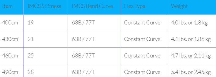 | tem | IMCS Stiffness | IMCS Bend Curve | Flex Type | Weight |
