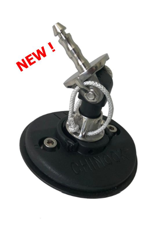 The all new Chinook Sailing 2-Bolt Pro Flex Mast Base Euro-Pin EX features all of the advantages of a tendon base with the added features of a mechanical base.